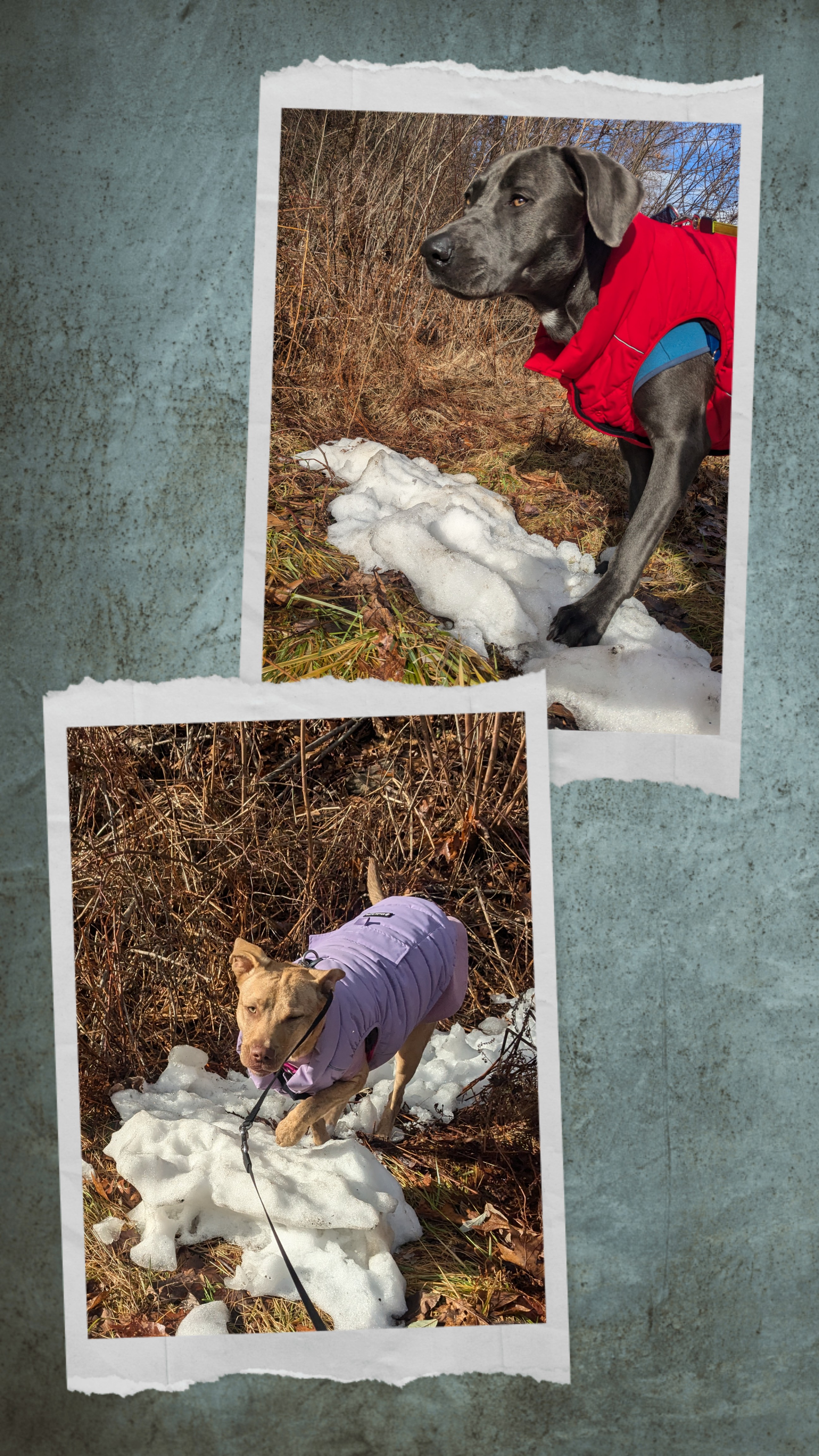 Oliver is no fan of a soggy doggy day and if he had it his way we would be snuggling on the couch watching is Doggy shows.🤣 Lucy on the the other hand is living all things new being a